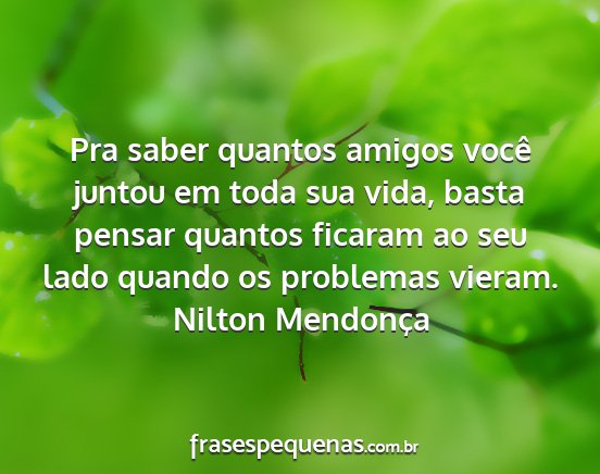 Pra saber quantos amigos você juntou em toda sua vida, basta pensar quantos ficaram ao seu lado quando os problemas vieram.Nilton Mendonça