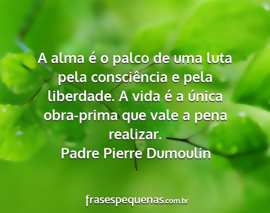 A alma é o palco de uma luta pela consciência e pela liberdade. A vida é a única obra-prima que vale a pena realizar.Padre Pierre Dumoulin