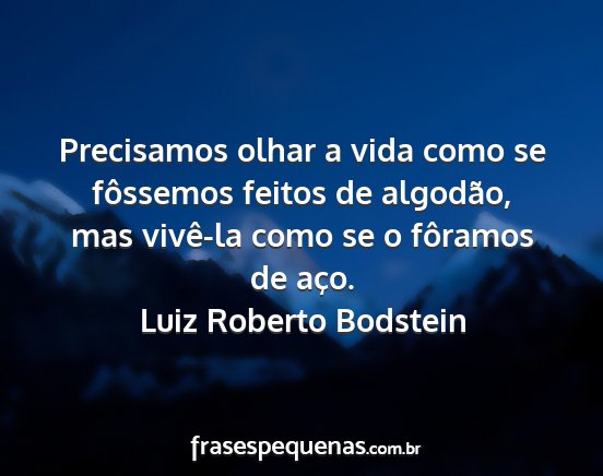 Precisamos olhar a vida como se fôssemos feitos de algodão, mas vivê-la como se o fôramos de aço.Luiz Roberto Bodstein