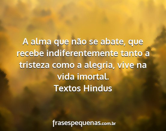 A alma que não se abate, que recebe indiferentemente tanto a tristeza como a alegria, vive na vida imortal.Textos Hindus