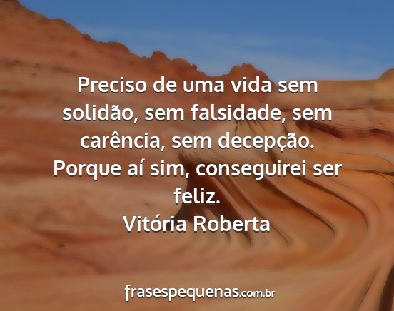 Preciso de uma vida sem solidão, sem falsidade, sem carência, sem decepção. Porque aí sim, conseguirei ser feliz.Vitória Roberta