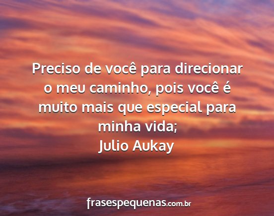 Preciso de você para direcionar o meu caminho, pois você é muito mais que especial para minha vida;Julio Aukay