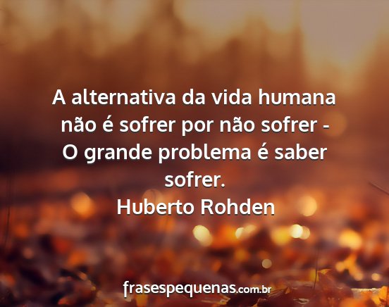 A alternativa da vida humana não é sofrer por não sofrer - O grande problema é saber sofrer.Huberto Rohden
