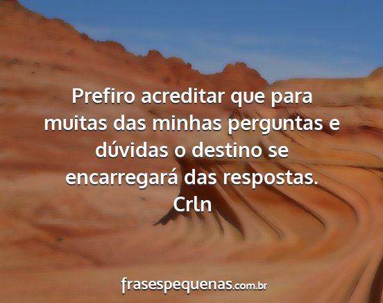 Prefiro acreditar que para muitas das minhas perguntas e dúvidas o destino se encarregará das respostas.Crln