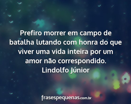 Prefiro morrer em campo de batalha lutando com honra do que viver uma vida inteira por um amor não correspondido.Lindolfo Júnior