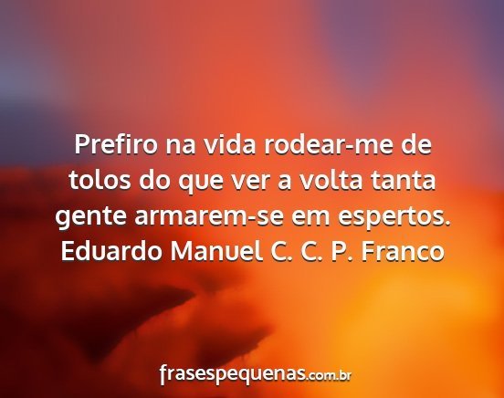 Prefiro na vida rodear-me de tolos do que ver a volta tanta gente armarem-se em espertos.Eduardo Manuel C. C. P. Franco