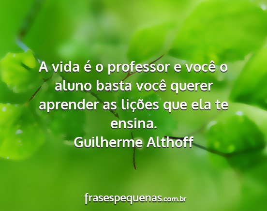 A vida é o professor e você o aluno basta você querer aprender as lições que ela te ensina.Guilherme Althoff