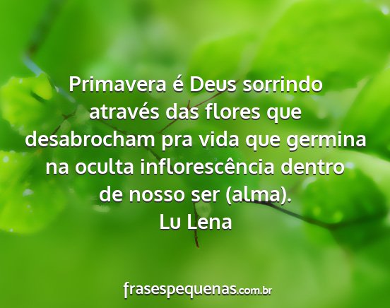 Primavera é Deus sorrindo através das flores que desabrocham pra vida que germina na oculta inflorescência dentro de nosso ser (alma).Lu Lena