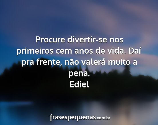 Procure divertir-se nos primeiros cem anos de vida. Daí pra frente, não valerá muito a pena.