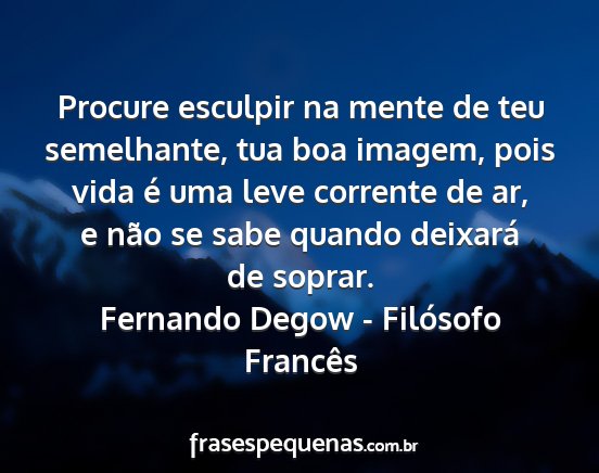 Procure esculpir na mente de teu semelhante, tua boa imagem, pois vida é uma leve corrente de ar, e não se sabe quando deixará de soprar.Fernando Degow - Filósofo Francês