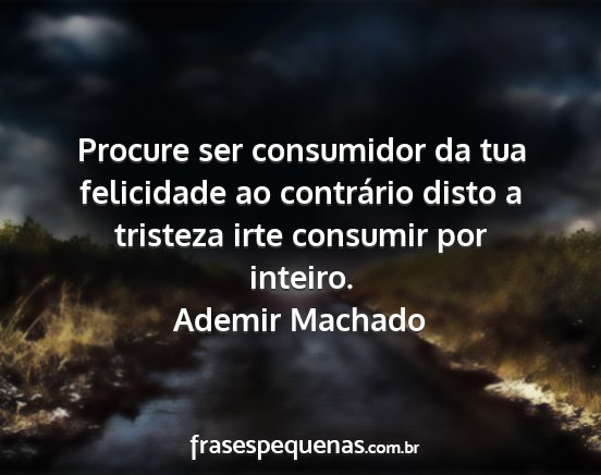 Procure ser consumidor da tua felicidade ao contrário disto a tristeza irte consumir por inteiro.Ademir Machado