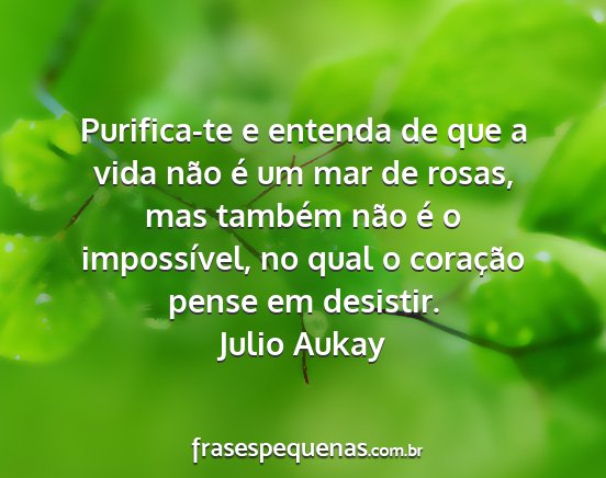 Purifica-te e entenda de que a vida não é um mar de rosas, mas também não é o impossível, no qual o coração pense em desistir.Julio Aukay