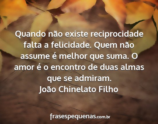 Quando não existe reciprocidade falta a felicidade. Quem não assume é melhor que suma. O amor é o encontro de duas almas que se admiram.João Chinelato Filho