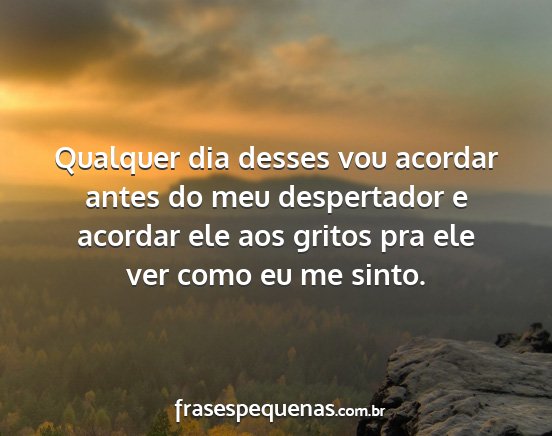 Qualquer dia desses vou acordar antes do meu despertador e acordar ele aos gritos pra ele ver como eu me sinto.