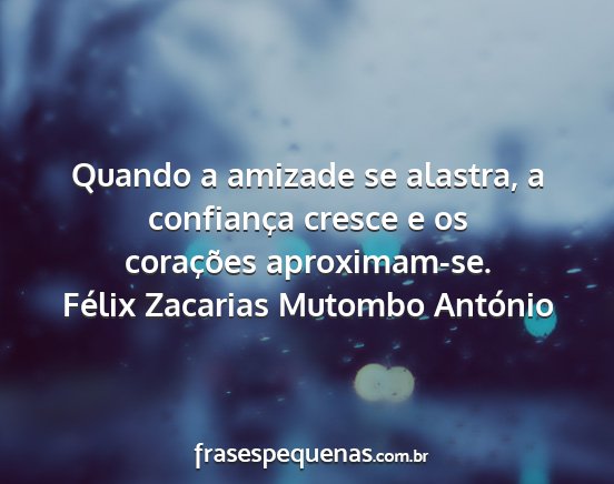 Quando a amizade se alastra, a confiança cresce e os corações aproximam-se.Félix Zacarias Mutombo António