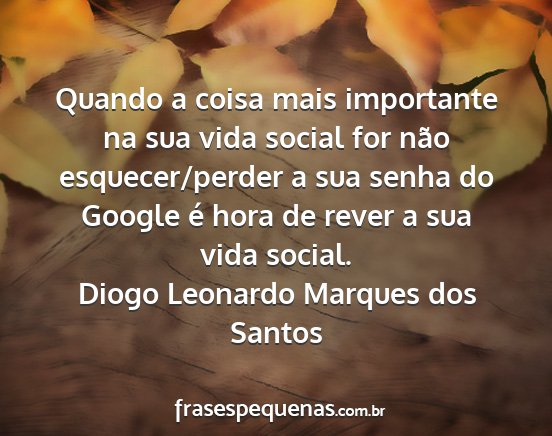 Quando a coisa mais importante na sua vida social for não esquecer/perder a sua senha do Google é hora de rever a sua vida social.Diogo Leonardo Marques dos Santos