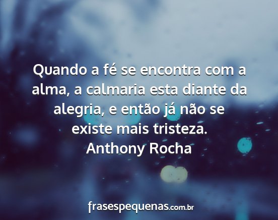 Quando a fé se encontra com a alma, a calmaria esta diante da alegria, e então já não se existe mais tristeza.Anthony Rocha