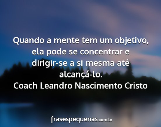 Quando a mente tem um objetivo, ela pode se concentrar e dirigir-se a si mesma até alcançá-lo.Coach Leandro Nascimento Cristo