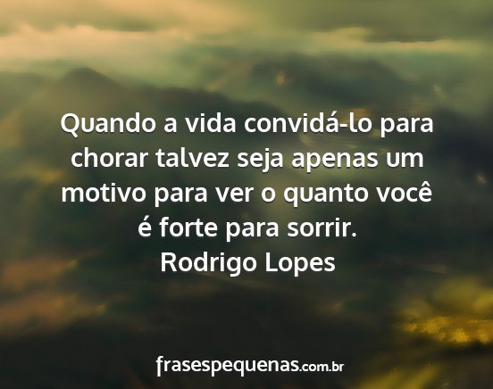 Quando a vida convidá-lo para chorar talvez seja apenas um motivo para ver o quanto você é forte para sorrir.Rodrigo Lopes