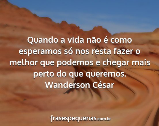 Quando a vida não é como esperamos só nos resta fazer o melhor que podemos e chegar mais perto do que queremos.Wanderson César