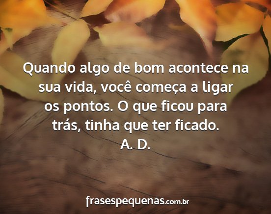 Quando algo de bom acontece na sua vida, você começa a ligar os pontos. O que ficou para trás, tinha que ter ficado.A. D.