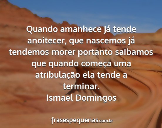 Quando amanhece já tende anoitecer, que nascemos já tendemos morer portanto saibamos que quando começa uma atribulação ela tende a terminar.Ismael Domingos