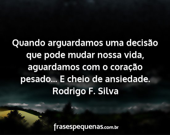 Quando arguardamos uma decisão que pode mudar nossa vida, aguardamos com o coração pesado... E cheio de ansiedade.Rodrigo F. Silva