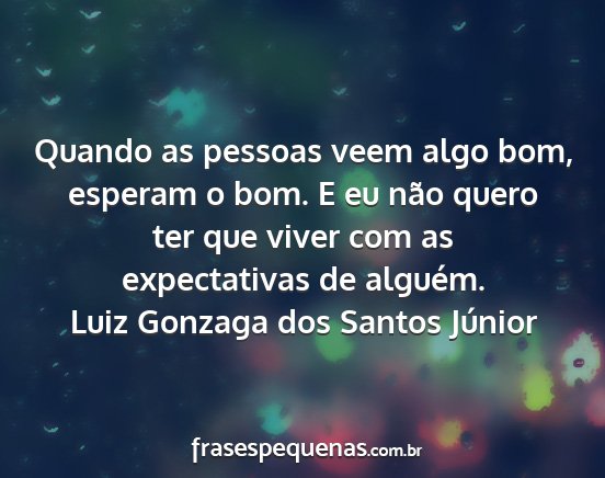 Quando as pessoas veem algo bom, esperam o bom. E eu não quero ter que viver com as expectativas de alguém.Luiz Gonzaga dos Santos Júnior