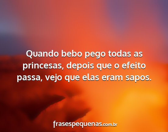 Quando bebo pego todas as princesas, depois que o efeito passa, vejo que elas eram sapos.