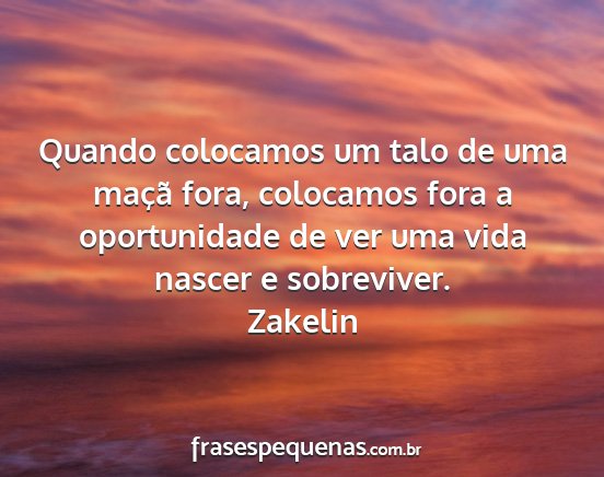 Quando colocamos um talo de uma maçã fora, colocamos fora a oportunidade de ver uma vida nascer e sobreviver.Zakelin