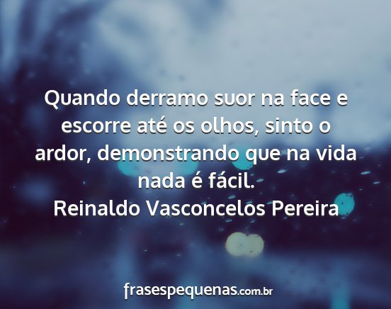 Quando derramo suor na face e escorre até os olhos, sinto o ardor, demonstrando que na vida nada é fácil.Reinaldo Vasconcelos Pereira