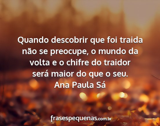 Quando descobrir que foi traida não se preocupe, o mundo da volta e o chifre do traidor será maior do que o seu.Ana Paula Sá