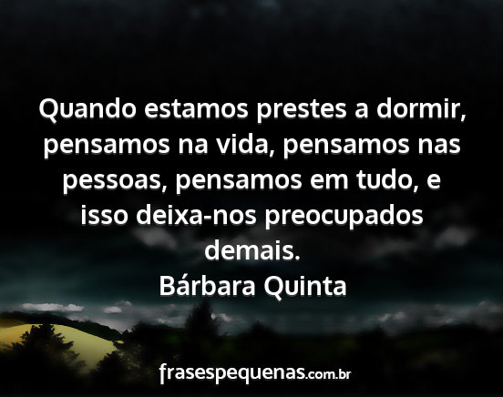 Quando estamos prestes a dormir, pensamos na vida, pensamos nas pessoas, pensamos em tudo, e isso deixa-nos preocupados demais.Bárbara Quinta