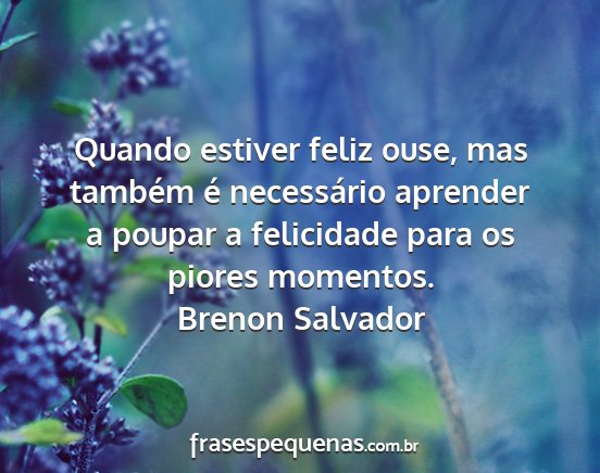 Quando estiver feliz ouse, mas também é necessário aprender a poupar a felicidade para os piores momentos.Brenon Salvador