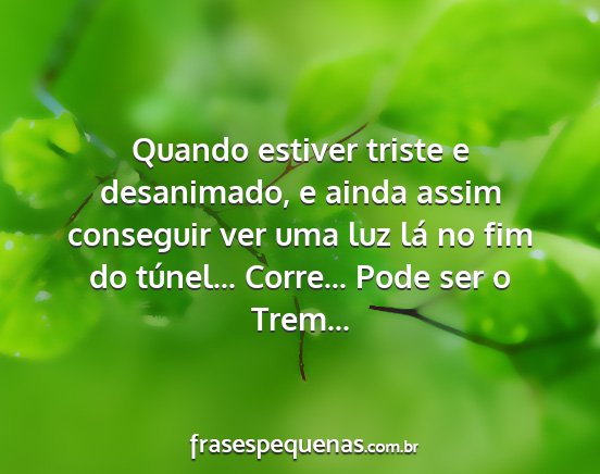 Quando estiver triste e desanimado, e ainda assim conseguir ver uma luz lá no fim do túnel... Corre... Pode ser o Trem...