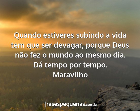 Quando estiveres subindo a vida tem que ser devagar, porque Deus não fez o mundo ao mesmo dia. Dá tempo por tempo.Maravilho