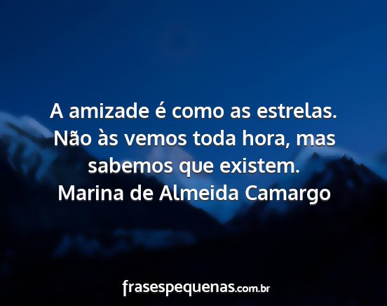 A amizade é como as estrelas. Não às vemos toda hora, mas sabemos que existem.Marina de Almeida Camargo