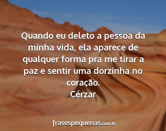 Quando eu deleto a pessoa da minha vida, ela aparece de qualquer forma pra me tirar a paz e sentir uma dorzinha no coração.Cérzar
