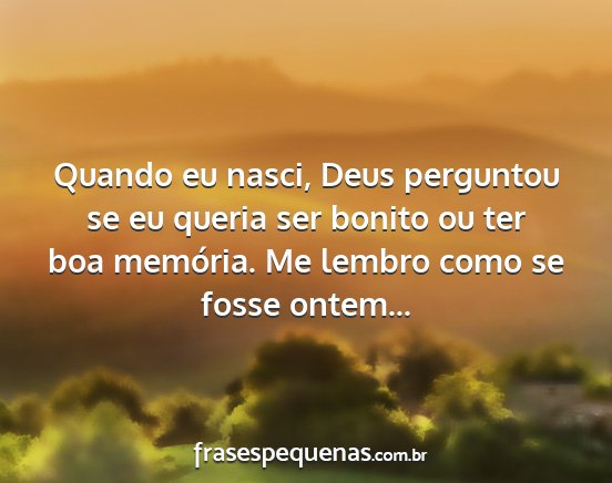 Quando eu nasci, Deus perguntou se eu queria ser bonito ou ter boa memória. Me lembro como se fosse ontem...
