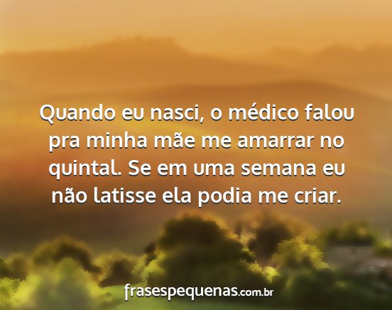 Quando eu nasci, o médico falou pra minha mãe me amarrar no quintal. Se em uma semana eu não latisse ela podia me criar.
