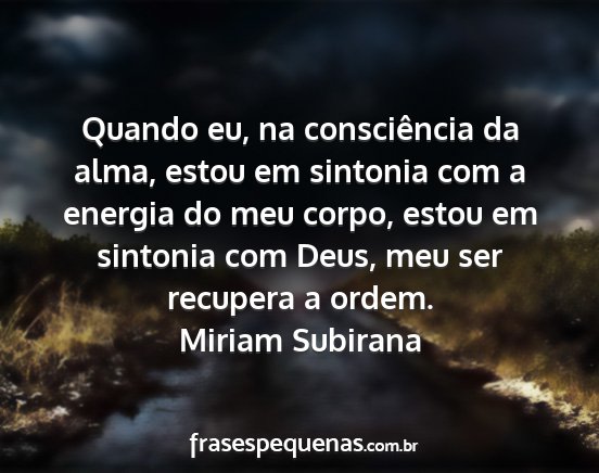 Quando eu, na consciência da alma, estou em sintonia com a energia do meu corpo, estou em sintonia com Deus, meu ser recupera a ordem.Miriam Subirana
