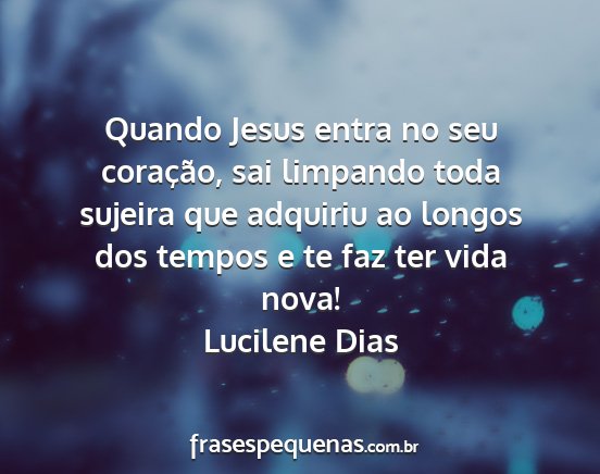 Quando Jesus entra no seu coração, sai limpando toda sujeira que adquiriu ao longos dos tempos e te faz ter vida nova!Lucilene Dias