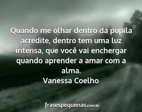 Quando me olhar dentro da pupila acredite, dentro tem uma luz intensa, que você vai enchergar quando aprender a amar com a alma.Vanessa Coelho