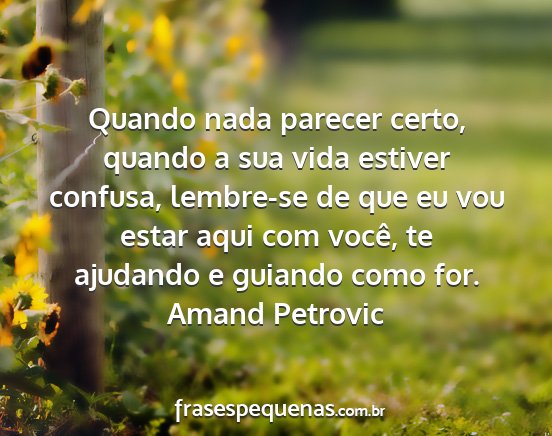 Quando nada parecer certo, quando a sua vida estiver confusa, lembre-se de que eu vou estar aqui com você, te ajudando e guiando como for.Amand Petrovic
