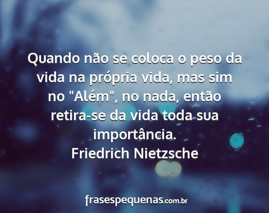 Quando não se coloca o peso da vida na própria vida, mas sim no "Além", no nada, então retira-se da vida toda sua importância.Friedrich Nietzsche