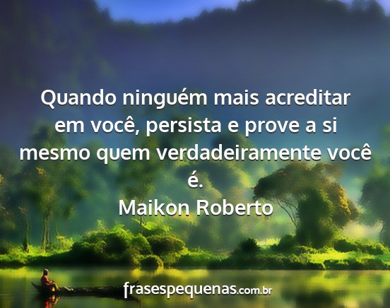Quando ninguém mais acreditar em você, persista e prove a si mesmo quem verdadeiramente você é.Maikon Roberto