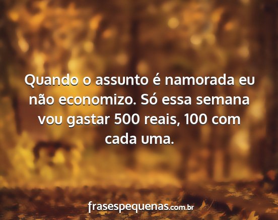 Quando o assunto é namorada eu não economizo. Só essa semana vou gastar 500 reais, 100 com cada uma.
