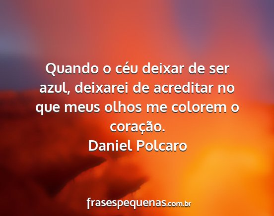Quando o céu deixar de ser azul, deixarei de acreditar no que meus olhos me colorem o coração.Daniel Polcaro