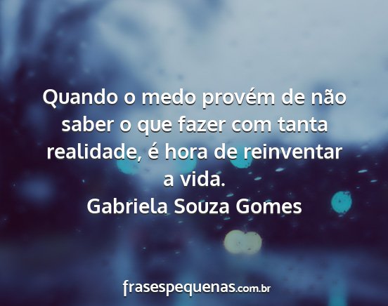 Quando o medo provém de não saber o que fazer com tanta realidade, é hora de reinventar a vida.Gabriela Souza Gomes