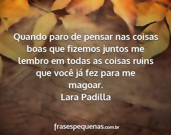 Quando paro de pensar nas coisas boas que fizemos juntos me lembro em todas as coisas ruins que você já fez para me magoar.Lara Padilla